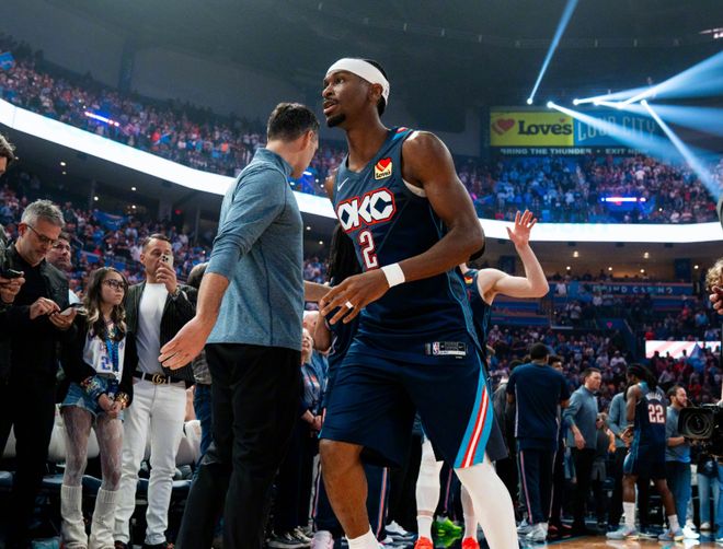 阿丘瓦和德罗赞内突外投,不过雷霆替补席在亚历山大带领下逐渐拉开分差。关键时刻,威少三分球止血!此后施罗德续上三分,德罗赞翻身跳投,节末杰林和亚历山大继续上分,拉文后场超远三分超时,雷霆半场58-50领先国王。第三节初段,霍姆格伦率先命中三分,威少迎着亚历山大干拔跳投,亚历山大单打如探囊取物一般,国王进攻愈发吃力。中段威少喂饼蒙克再中三分,亚历山大带着多特维持10分左右分差,节末亚历山大继续强攻,配合霍姆格伦暴扣,明显想三节打卡,三节打完时,雷霆83-69国王。